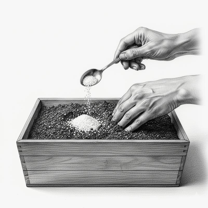 3 cucchiai da cucina (circa 30 gr. totali) mescolati con 25 lt di terriccio per invasare piante e fiori. Nel caso di piante già invasate fare dei buchi fino alle radici e inserire il prodotto.