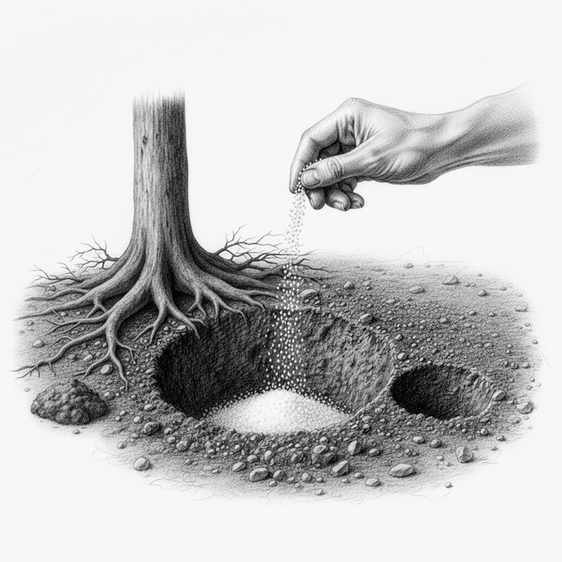 Distribuito nella buca di trapianto in caso di messa a dimora di alberi giovani