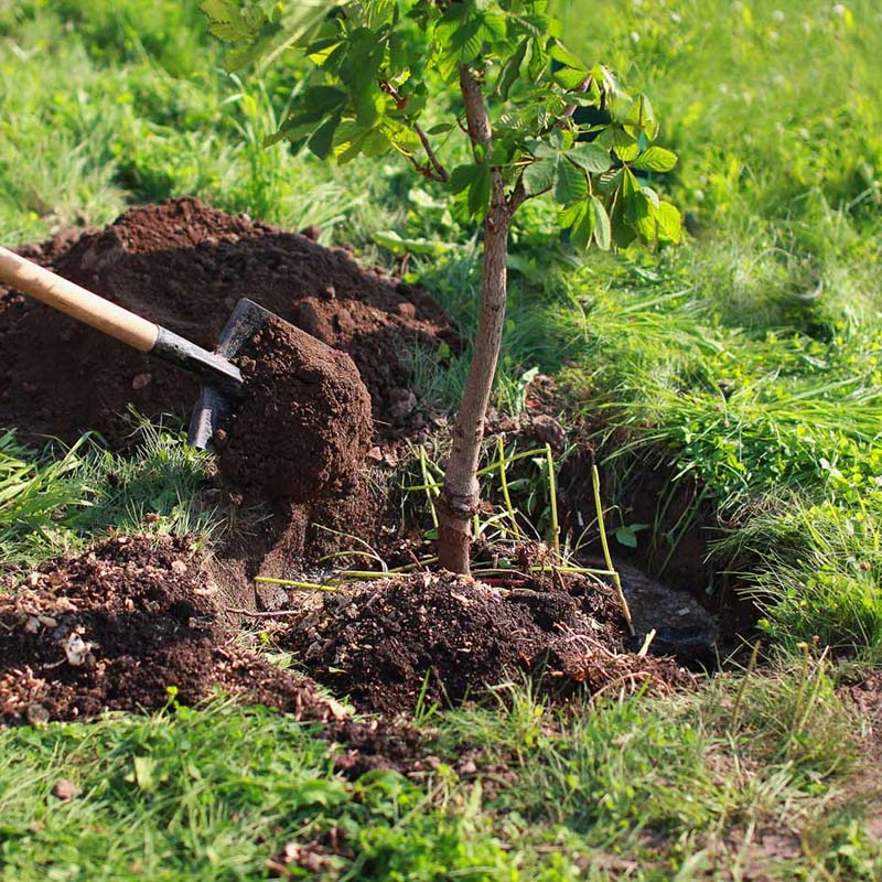 Muovi impianti di alberature e cespugli intorno alla zolla